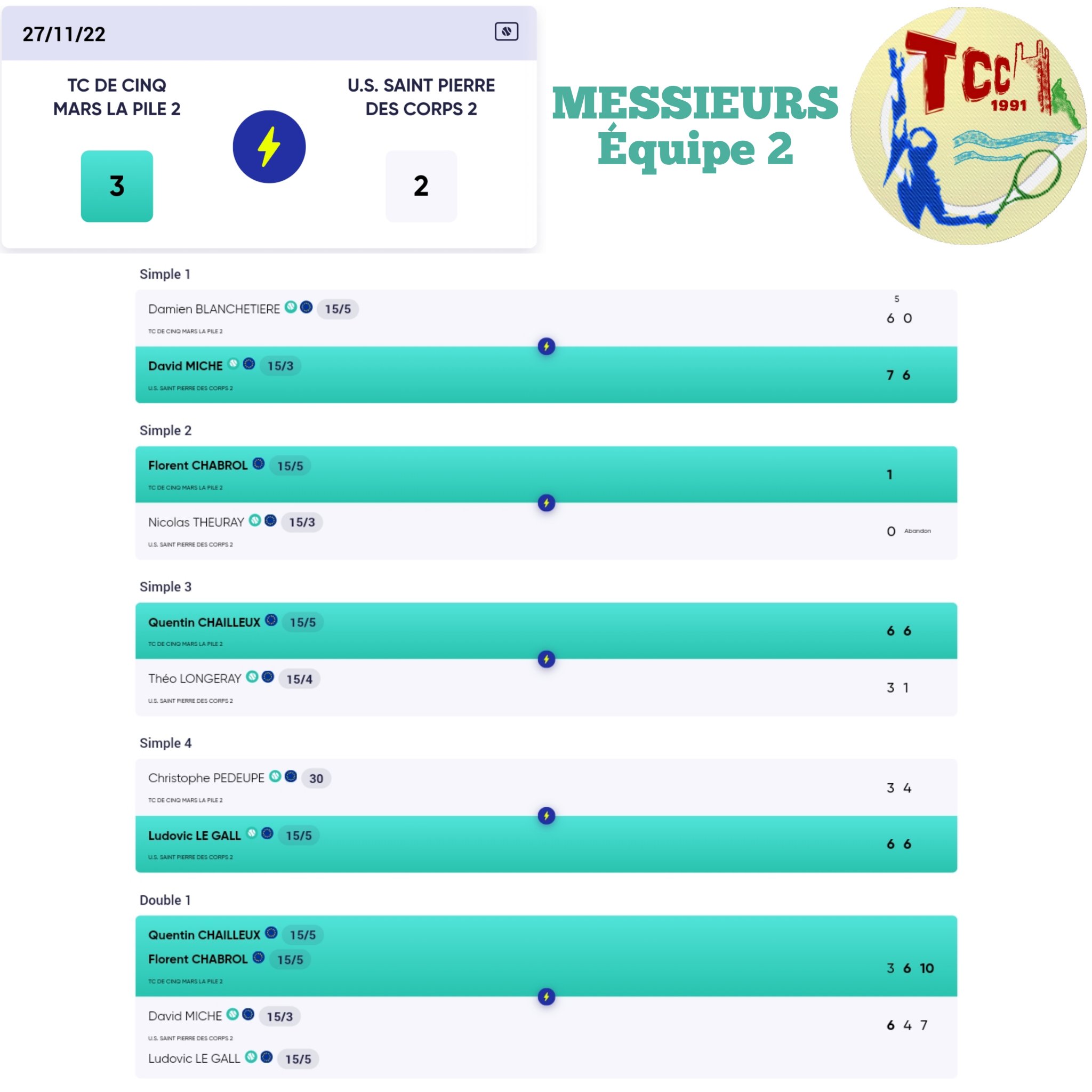 Équipe 2 : victoire 3-2 contre Saint Pierre des Corps 2