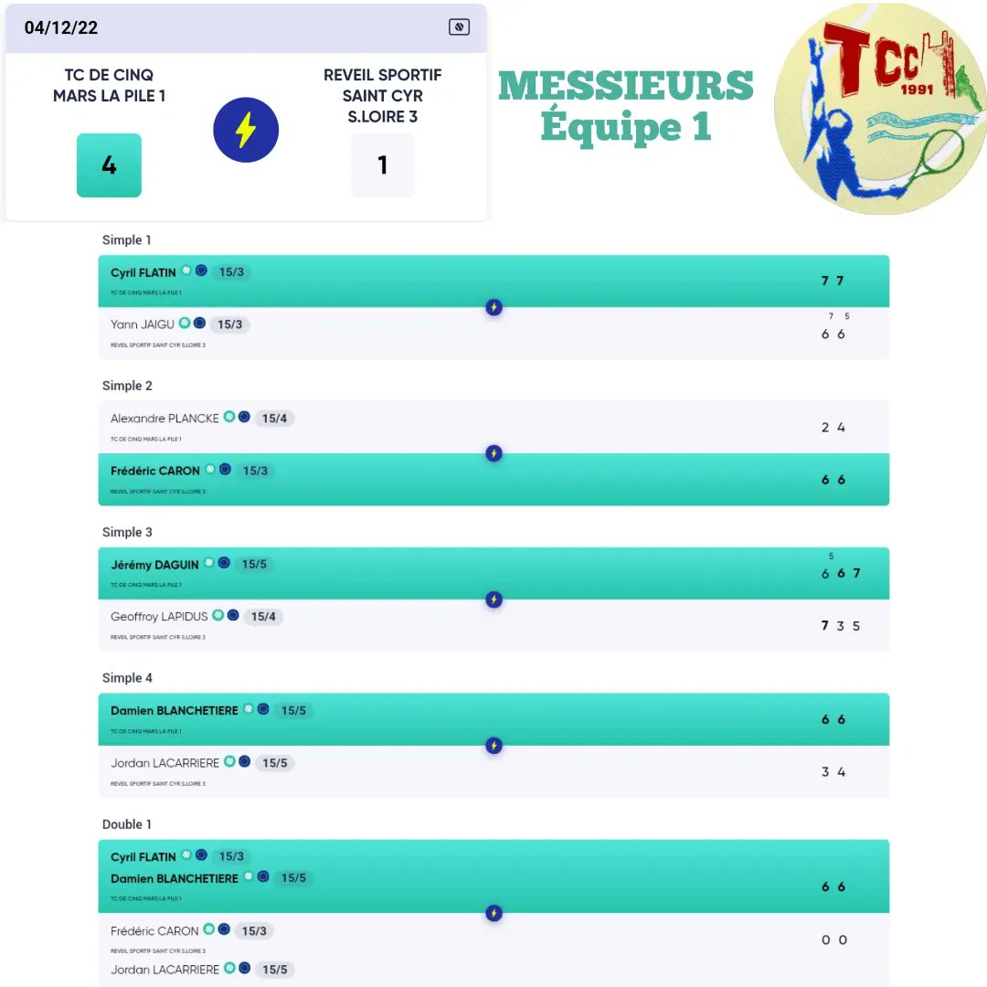 Équipe 1 : victoire 4-1 contre Saint Cyr 3