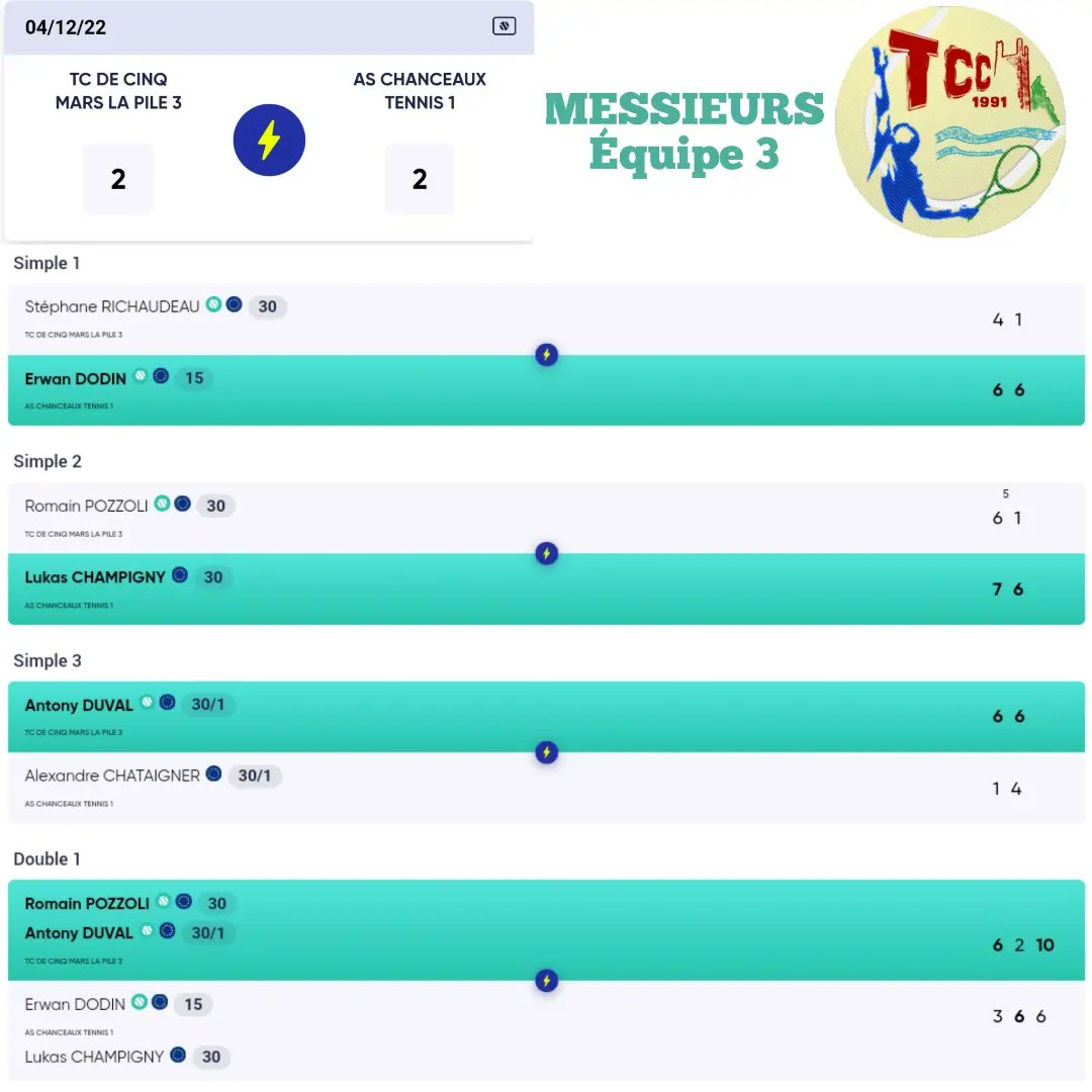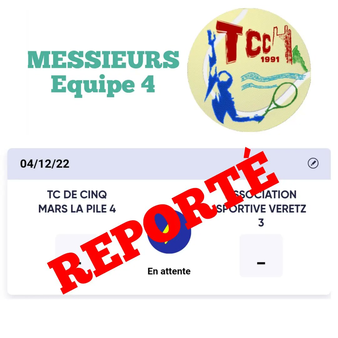Équipe 4 : report au 18/12/2022 contre Veretz 3