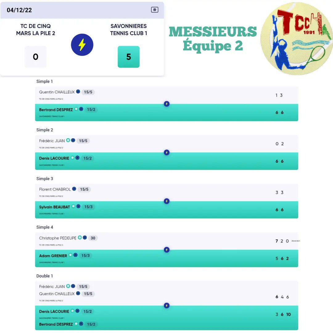 Équipe 2 : défaite 5-0 contre Savonnières 1