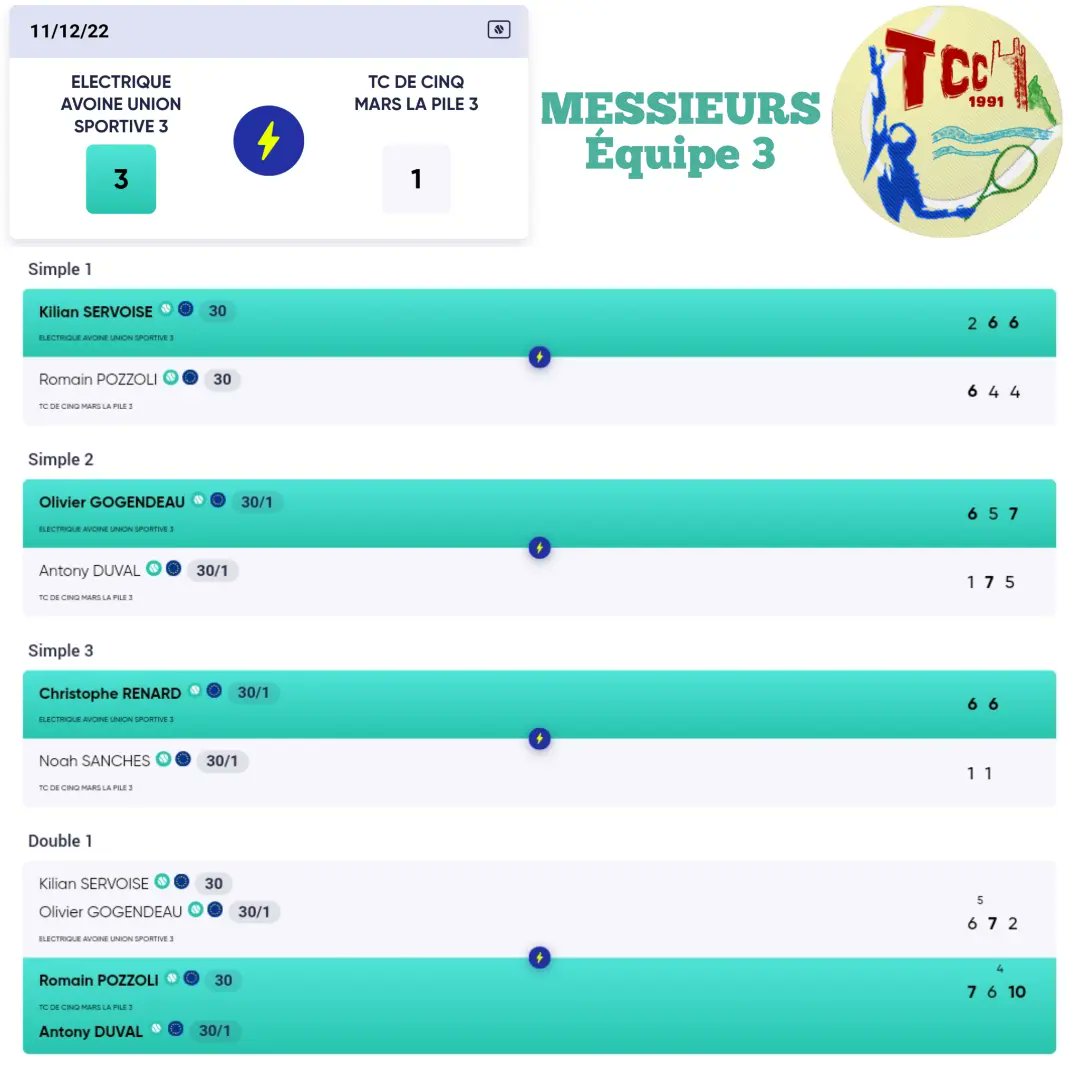 Équipe 2 : victoire 3-2 contre Montlouis 3