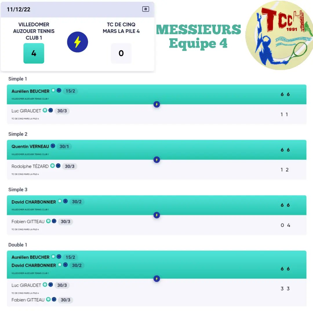 Équipe 4 : défaite 0-4 contre Villedomer/Auzouer 1