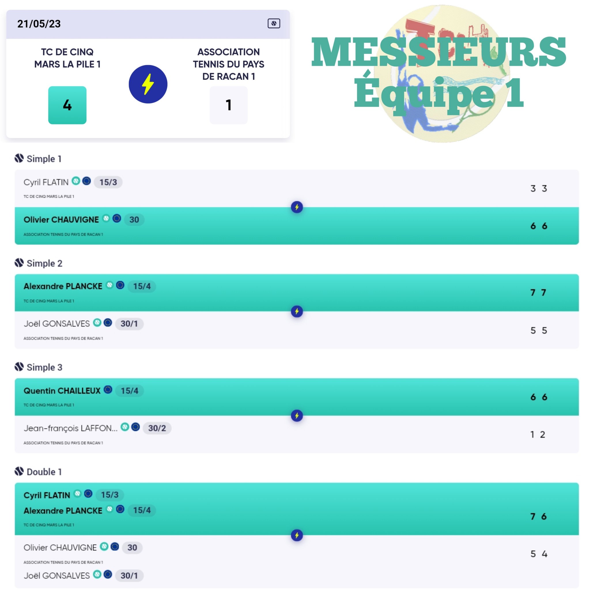 - Équipe 1 : victoire 4-1 contre Pays de Racan 1