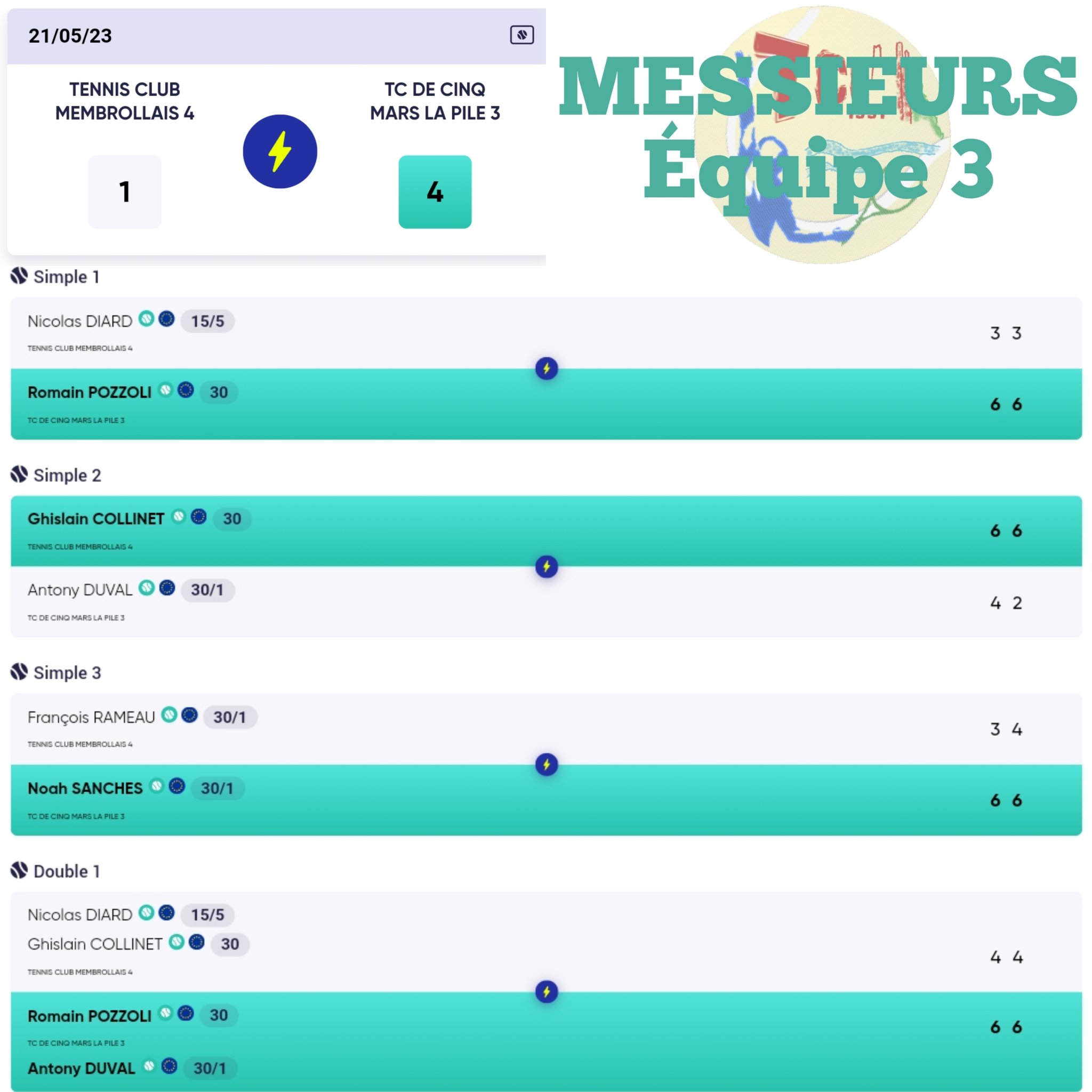 - Équipe 3 : victoire 4-1 contre La Membrolle 4