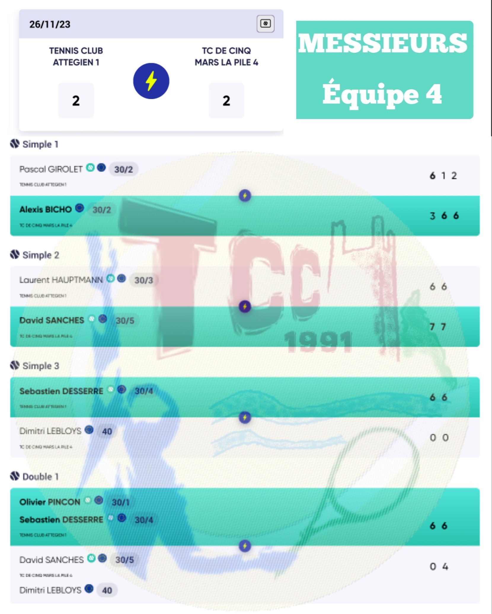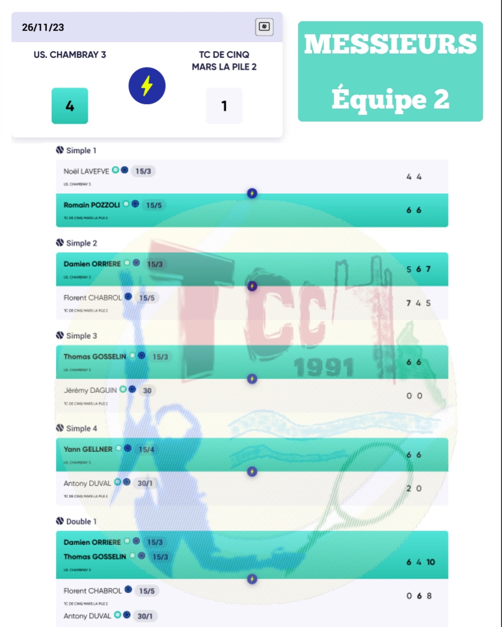 - Équipe 2 : défaite 1-4 contre CHAMBRAY 3 🥺
