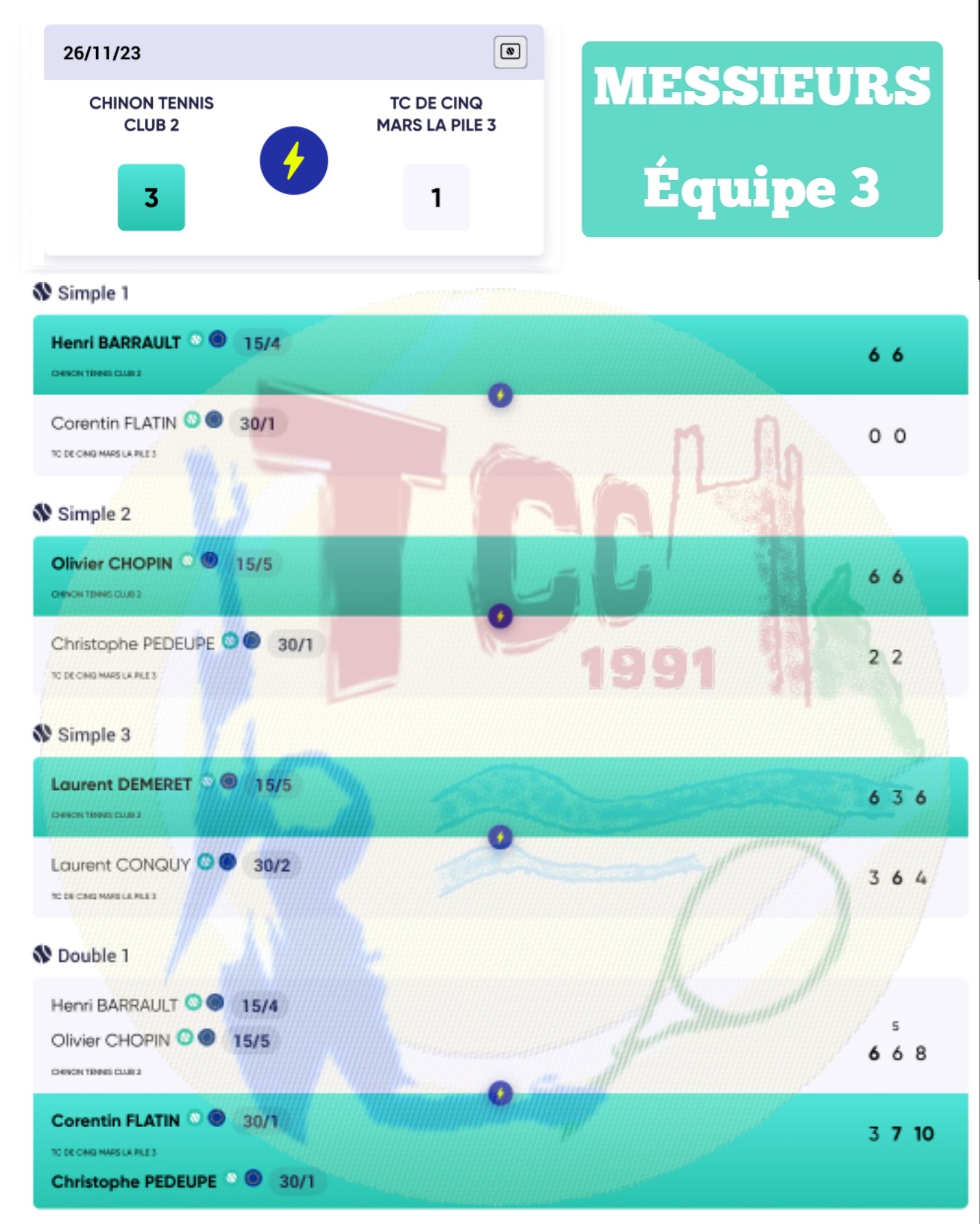 - Équipe 3 : défaite 1-3 contre CHINON 2 🥺
