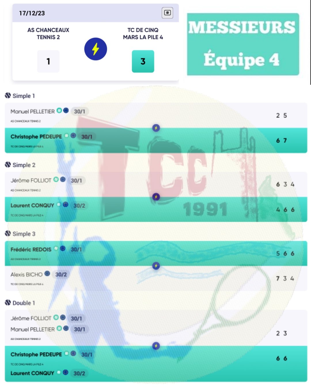 - Équipe 4 : victoire 3-1 contre CHANCEAUX 2 😀