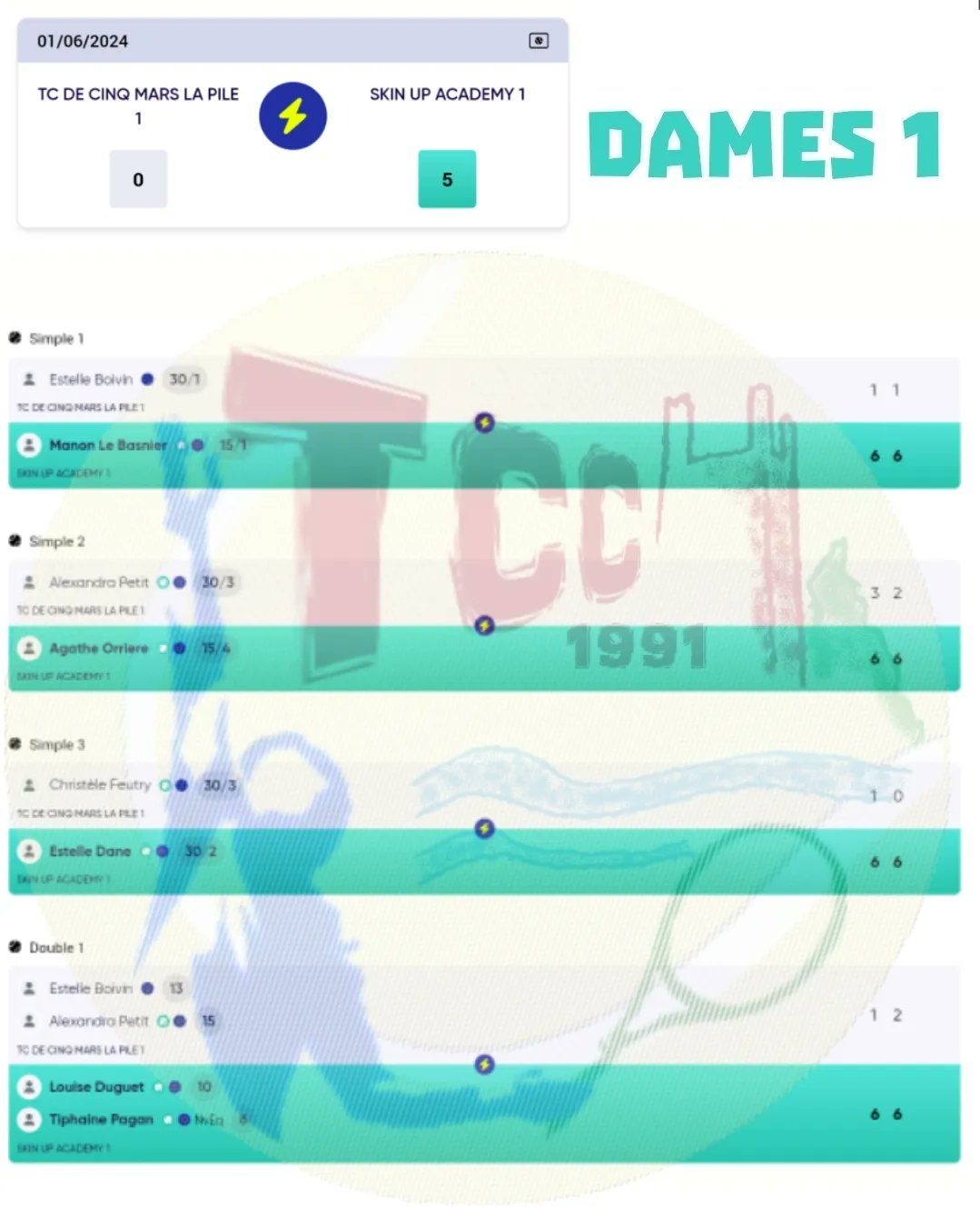 - Équipe 1 : défaite 0-5 contre SKIN UP ACADEMY 1