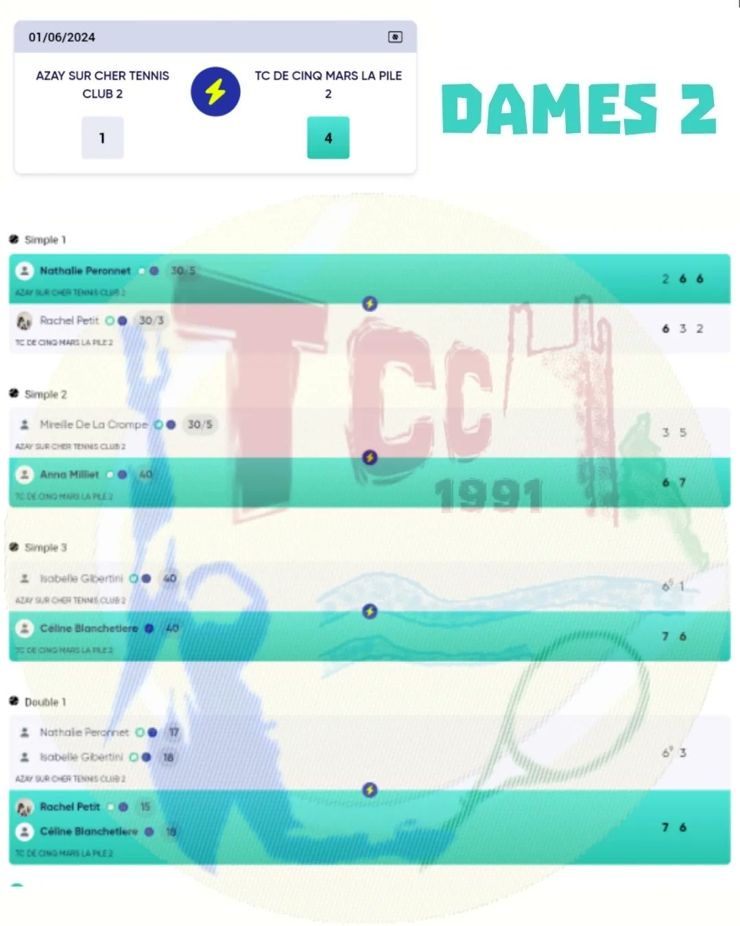 - Équipe 2 : victoire 4-1 contre AZAY SUR CHER 2 😀