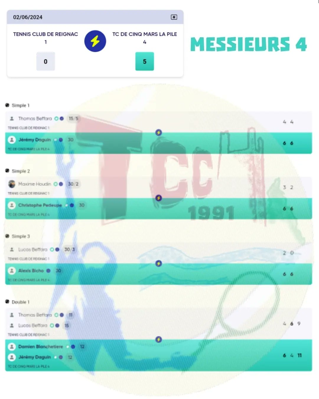 - Équipe 4 : victoire 5-0 contre REIGNAC 1 😀