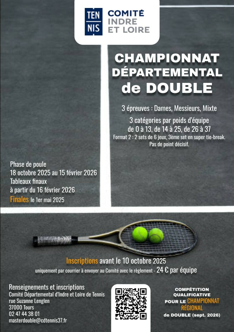 Plus d'informations sur le site du comité : 🔗▶️ https://cdtennis37.fr/les-competitions/masters-doubles/