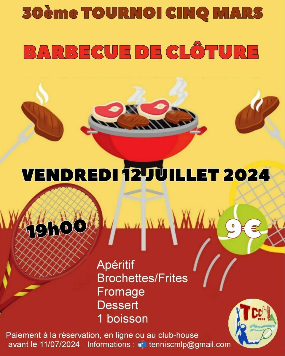 Pour se retrouver autour d'un moment de convivialité, le Tennis Club Cinq Mars organise un barbecue de clôture pour la 30ème Édition de son Tournoi.