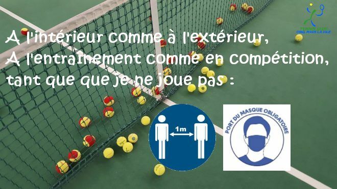 Les entraînements ont commencé cette semaine et pour éviter toute dérive dans l'application du protocole "Rentrée sportive FFT", je rappelle à toutes et tous, les règles sanitaires obligatoires :