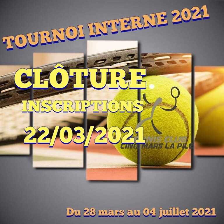Le TCC vous rappelle que la clôture des inscriptions pour le tournoi interne est fixée à demain lundi 22 mars 2021 !