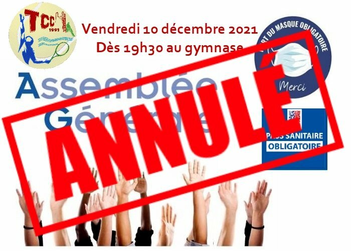 Suite aux mesures sanitaires du 07 décembre, nous sommes dans l'obligation d'annuler l'Assemblée Générale du Tennis Club Cinq Mars prévue demain.