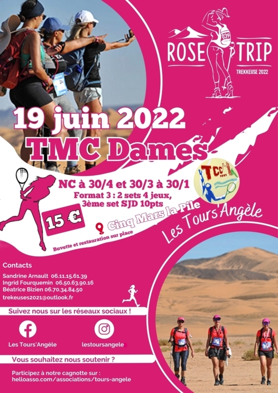 Afin de récolter des fonds pour ce projet, son association Tours'Angèle, va organiser un TMC le 19 juin au Tennis Club Cinq Mars :