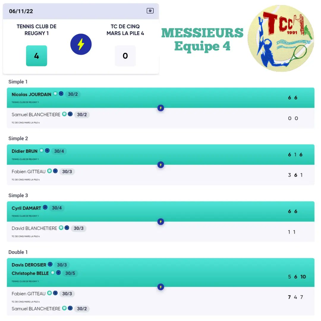 - Équipe 4 : défaite 0-4 contre Reugny 1