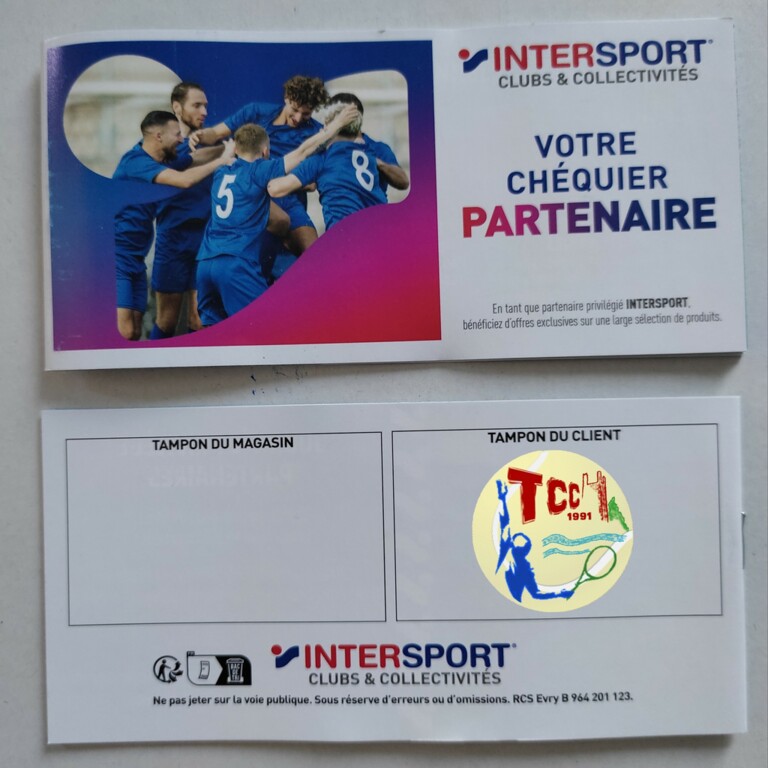 Dans le cadre de notre partenariat avec Intersport pour notre boutique en ligne, un chèquier Partenaire est remis à chaque licencié(e).