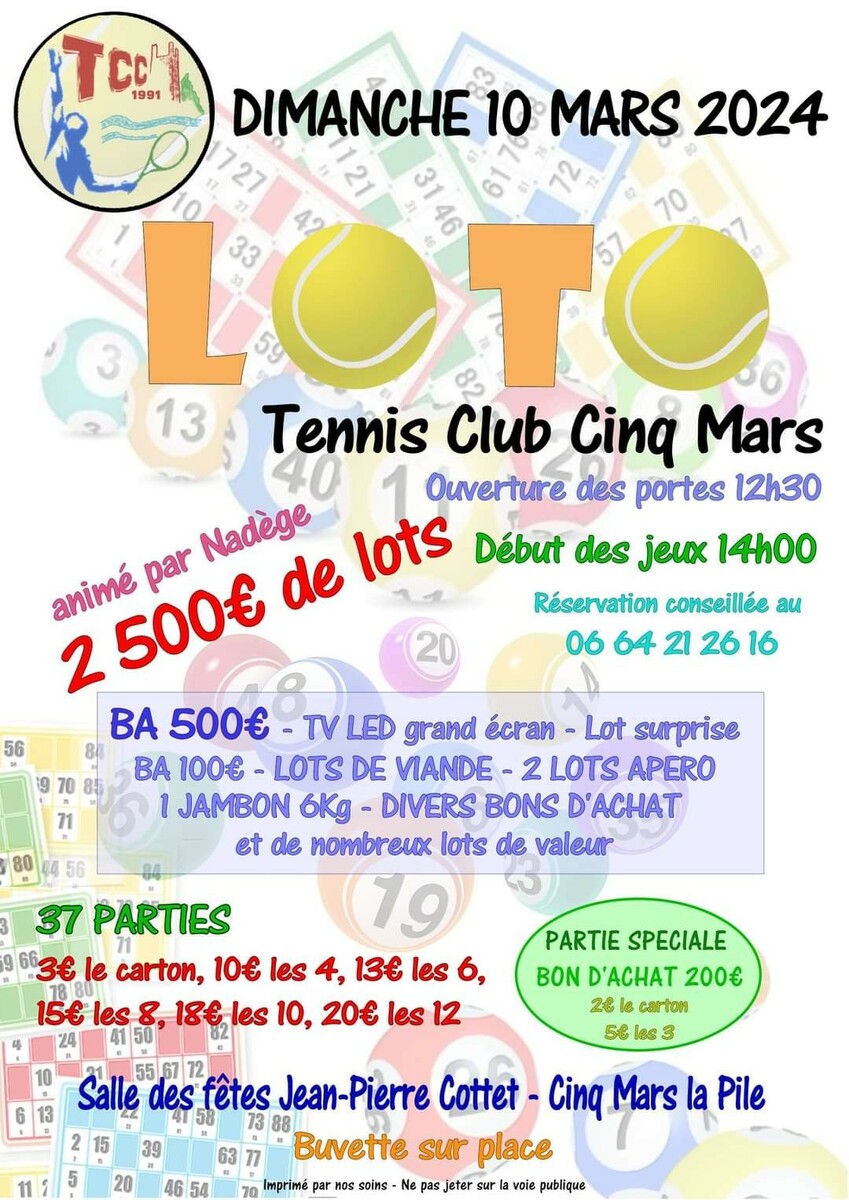 #loto #tennis #cinqmarslapile #animation #restauration #buvette #cartons #lots