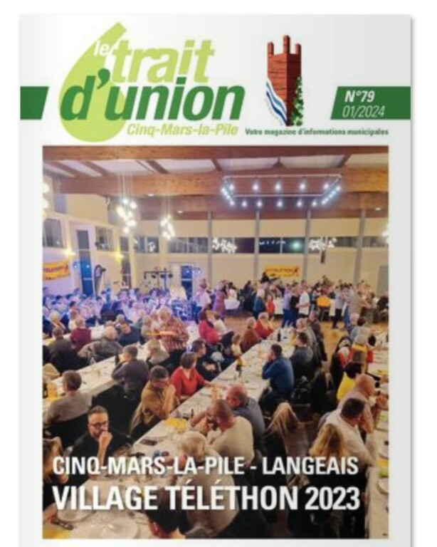Retrouvez la version en ligne du Trait d'Union n°79 de janvier 2024, bulletin municipal de Ville de Cinq Mars la Pile !