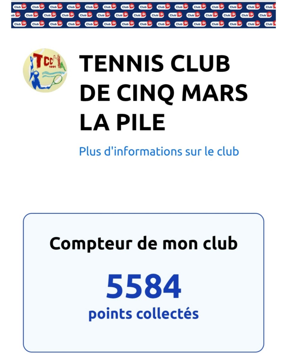 Grâce à votre Carte #Carrefour , le compteur du TC Cinq Mars est à 5584 !💪 🙏