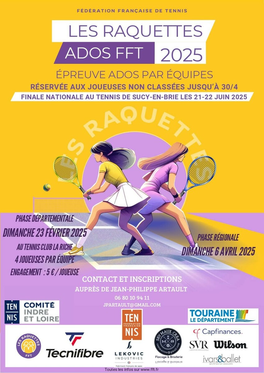 Tous les renseignements sur le site du comité : 🔗▶️ https://cdtennis37.fr/les-competitions/jeunes/