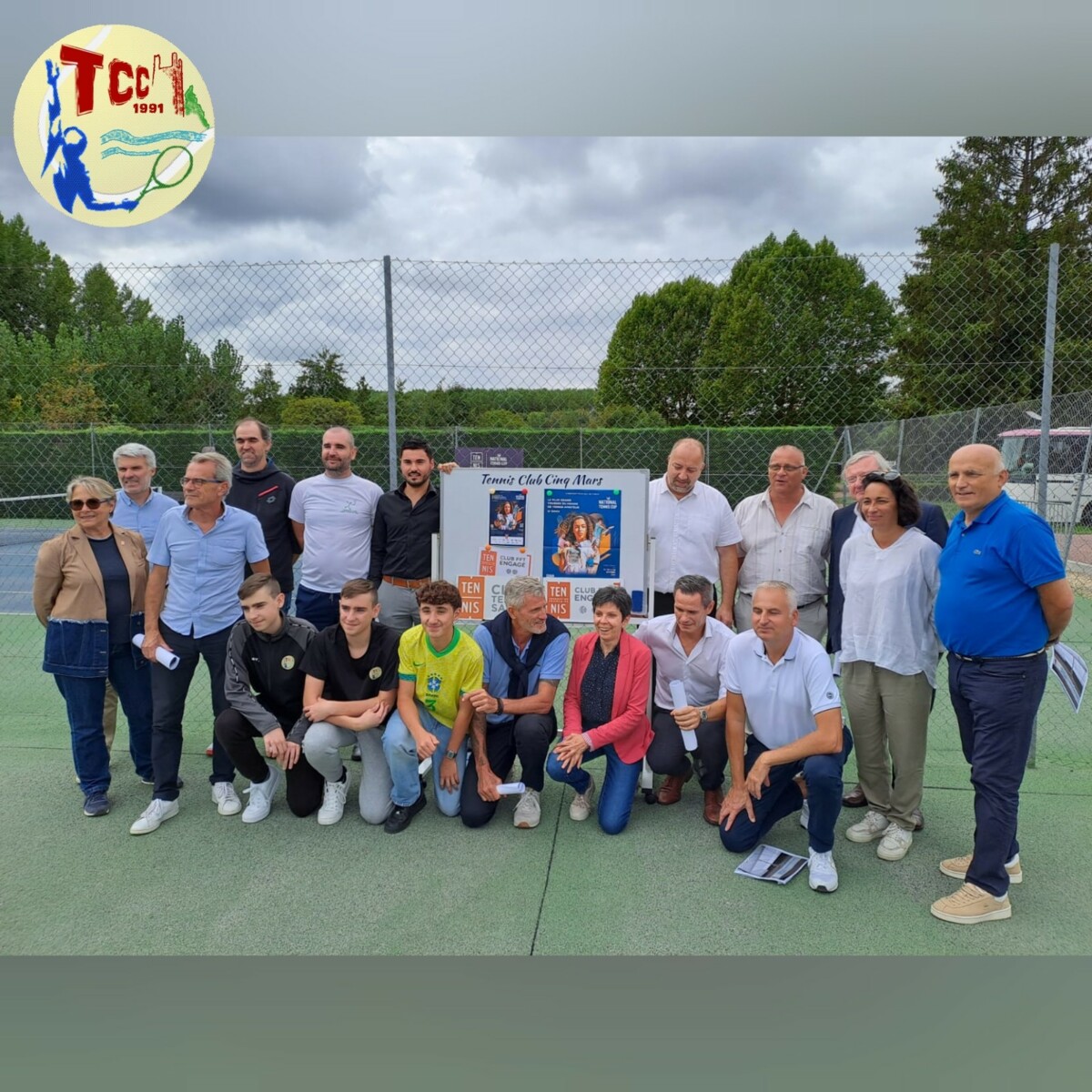 Aujourd'hui, le Tennis Club Cinq Mars a eu le privilège de recevoir une délégation de la FFT avec la présence de Gilles MORETTON (président FFT), Sabrina LEGER (Présidente de la ligue du Centre Val de Loire et vice-présidente FFT), Pierre DOUMEYROU (SG FFT), Adel LEKOVIC ( Directeur national technique FFT), Philippe BELOU (président de la ligue OCCITANIE), Michel POUTEAU (SG ligue CVL), Eric LEVIEUGE (Président du Comité 37) et Philippe MERCIER (SG du Comité 37).