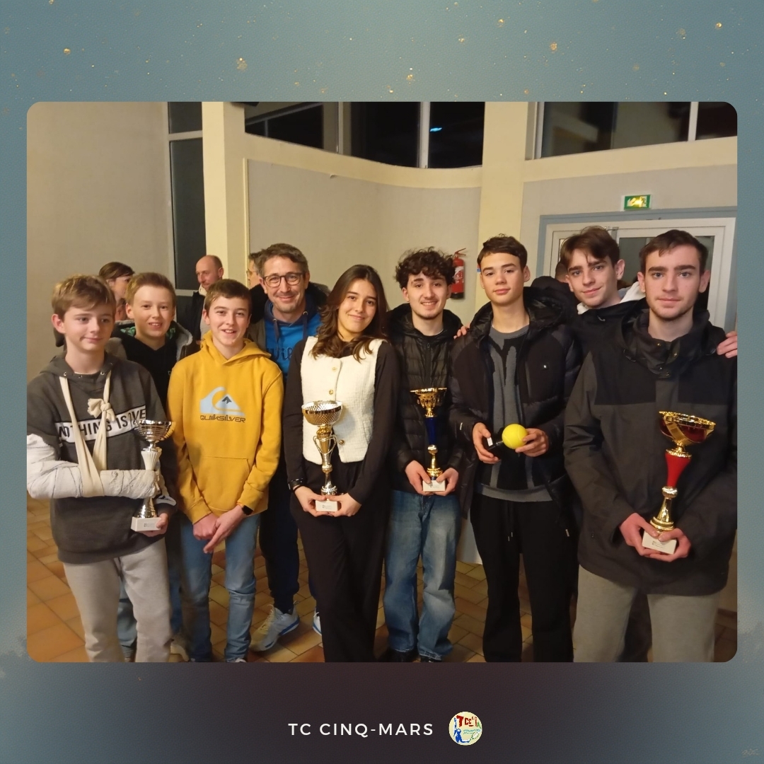 A l'occasion des voeux de Ville de Cinq Mars la Pile, le Tennis Club Cinq Mars a été mis à l'honneur et récompensé pour leur parcours sportif :