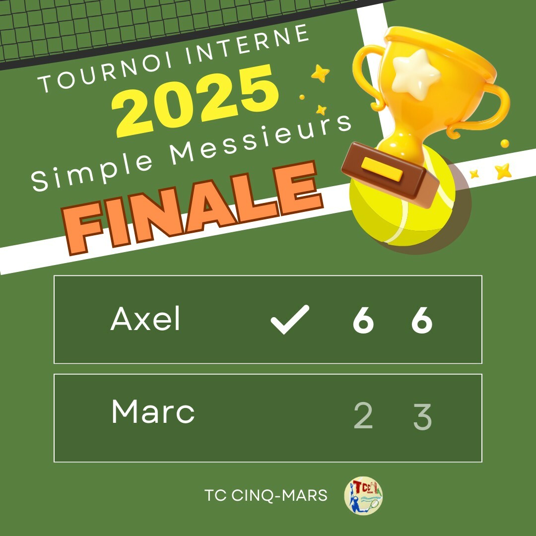 - Victoire (sur le fil 😁) d'Axel sur Marc : 6/2 6/3 🏆